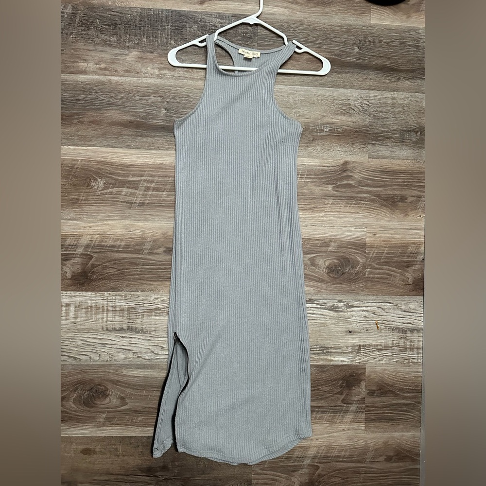 Elevate your style with this chic gray sleeveless ribbed dress. Perfect for any occasion, it offers a comfortable and flattering fit.