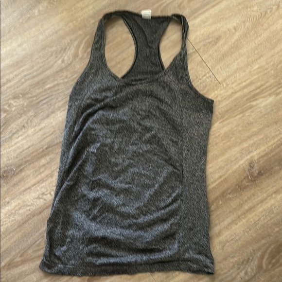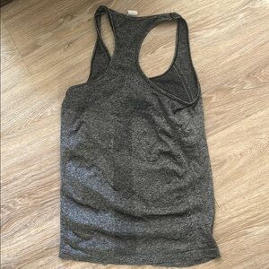 Stay comfortable and stylish with this gray racerback tank top. Perfect for workouts or casual wear.