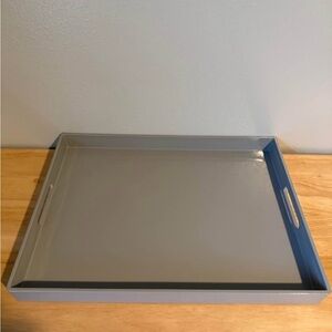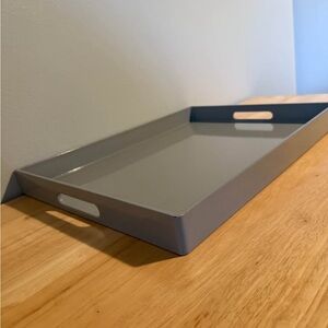 Used only a few times. Great condition! No dents or anything just very minor scratches (nothing deep). 18.75”x14”x1.75” Sleek gray rectangular serving tray. Perfect for organizing or serving.