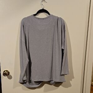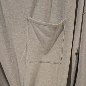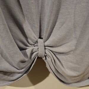 This gray top features a relaxed fit with a stylish tie front detail, offering a comfortable and casual look. The long sleeves and soft fabric make it perfect for everyday wear, providing both style and ease.