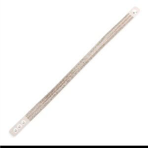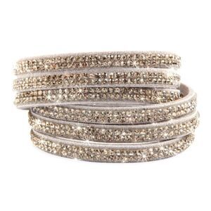 Beautiful Gray Rhinestone bracelet punctuated with a medley of glittering Swarovski elements just in time for the holidays or chic office wear. Sleek micro-fiber bracelets wrap and snap to 3 different sizes.