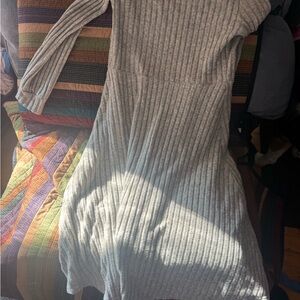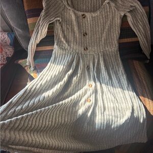 Gray Ribbed Button-Down Dress