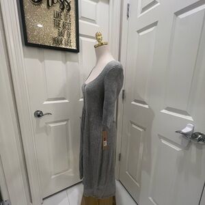 Elevate your wardrobe with this chic gray ribbed dress. Featuring a stylish button-front design, it's perfect for any occasion.