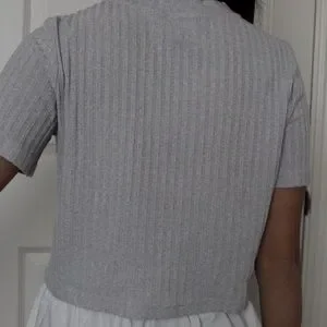 Gray Ribbed Button-Up Top
