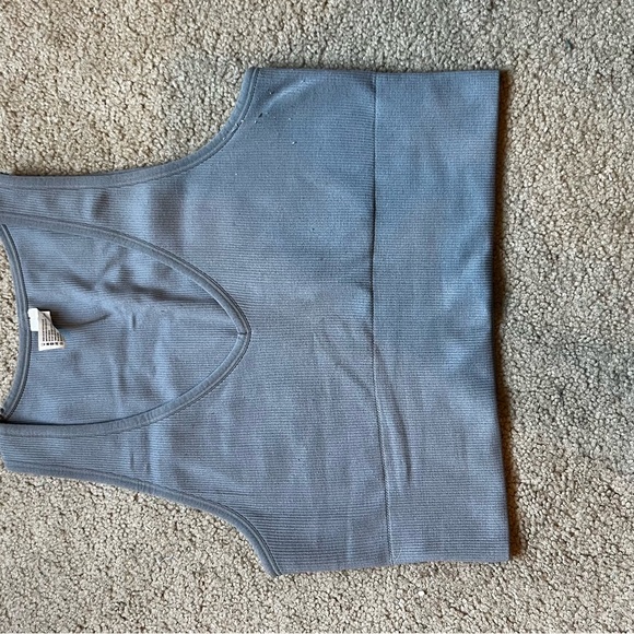 Stylish gray ribbed crop top. Perfect for casual wear.