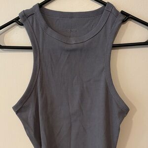 Stylish gray ribbed tank top perfect for casual outings. Soft and comfortable fabric for all-day wear.