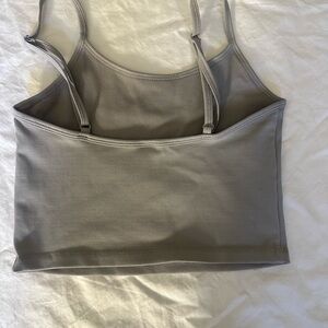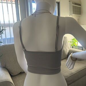Supportive ribbed crop tank from Vitality in a soft neutral gray. Size small. Worn only a few times and in excellent condition. Holds the bust really well and is perfect for workouts or athleisure.