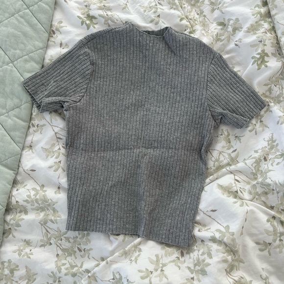 Elevate your style with this chic gray ribbed crop top. Perfect for any casual outing.