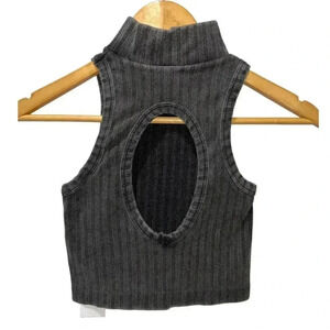Gray Ribbed Crop Top NWOT Revealed Back