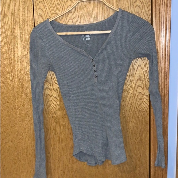 Gray Ribbed Henley, very comfortable