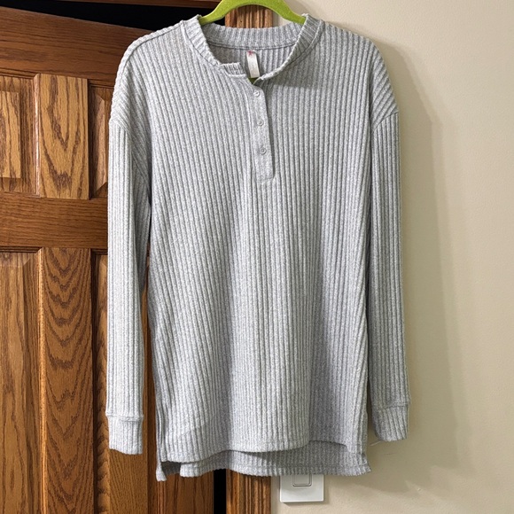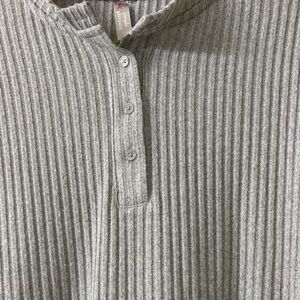 Gray Ribbed Henley Shirt