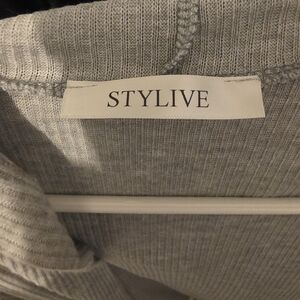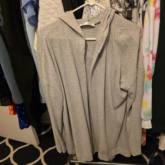 Gray Ribbed Hooded Cardigan