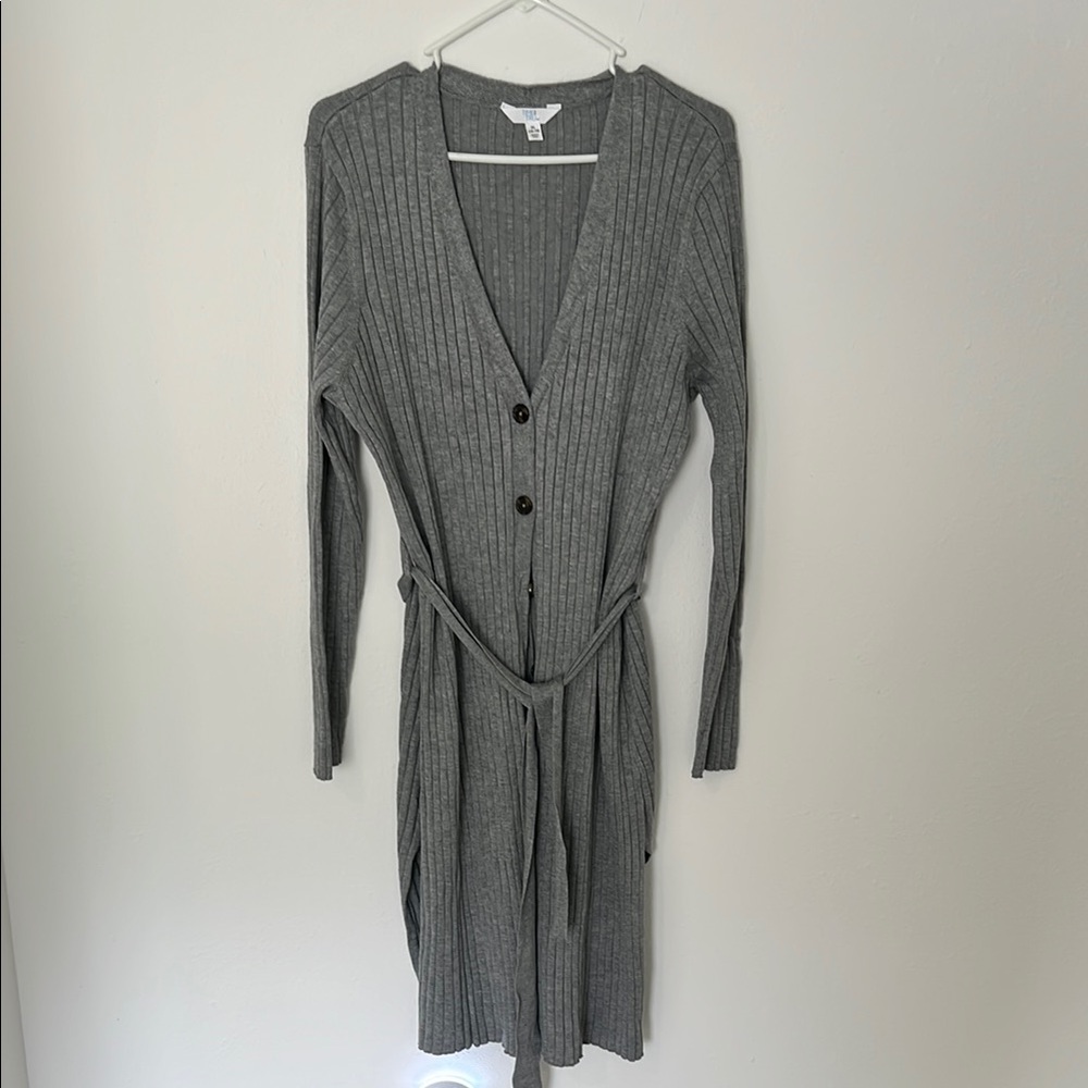 Stay cozy and stylish with this gray ribbed knit dress. Perfect for any occasion, this dress offers comfort and elegance.