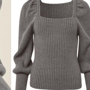 Stay cozy and stylish with this elegant gray ribbed knit sweater. Perfect for any occasion.