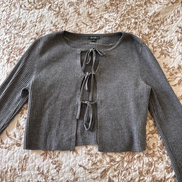 Elevate your style with this chic gray ribbed knit top. Perfect for any occasion, this top offers both comfort and elegance. Never worn