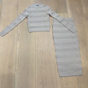 Gray Ribbed Knit Two-Piece Set