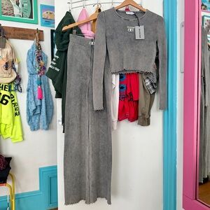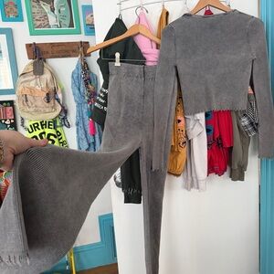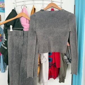 Gray Ribbed Knit Two-Piece Set