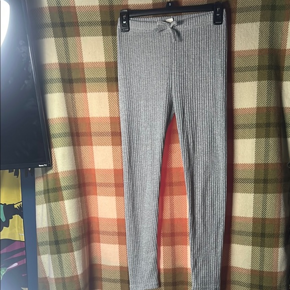 Stylish gray ribbed leggings. Perfect for casual wear.