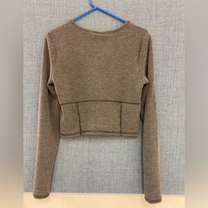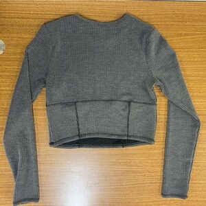 Gray Ribbed Long Sleeve Top
