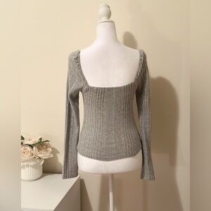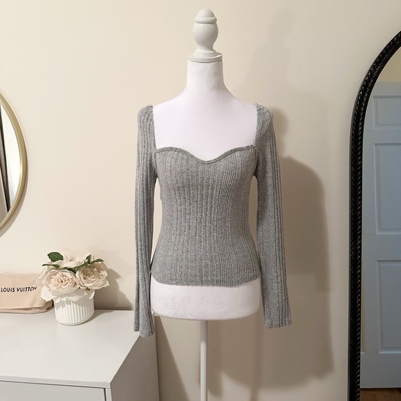 Stylish gray ribbed long sleeve top. Perfect for casual wear.