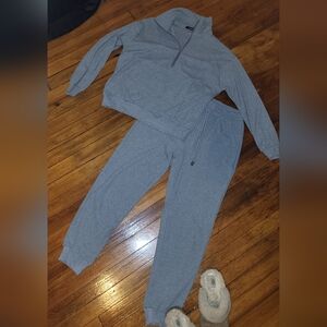 Comfortable gray pullover and jogger set. Perfect for lounging or casual outings.