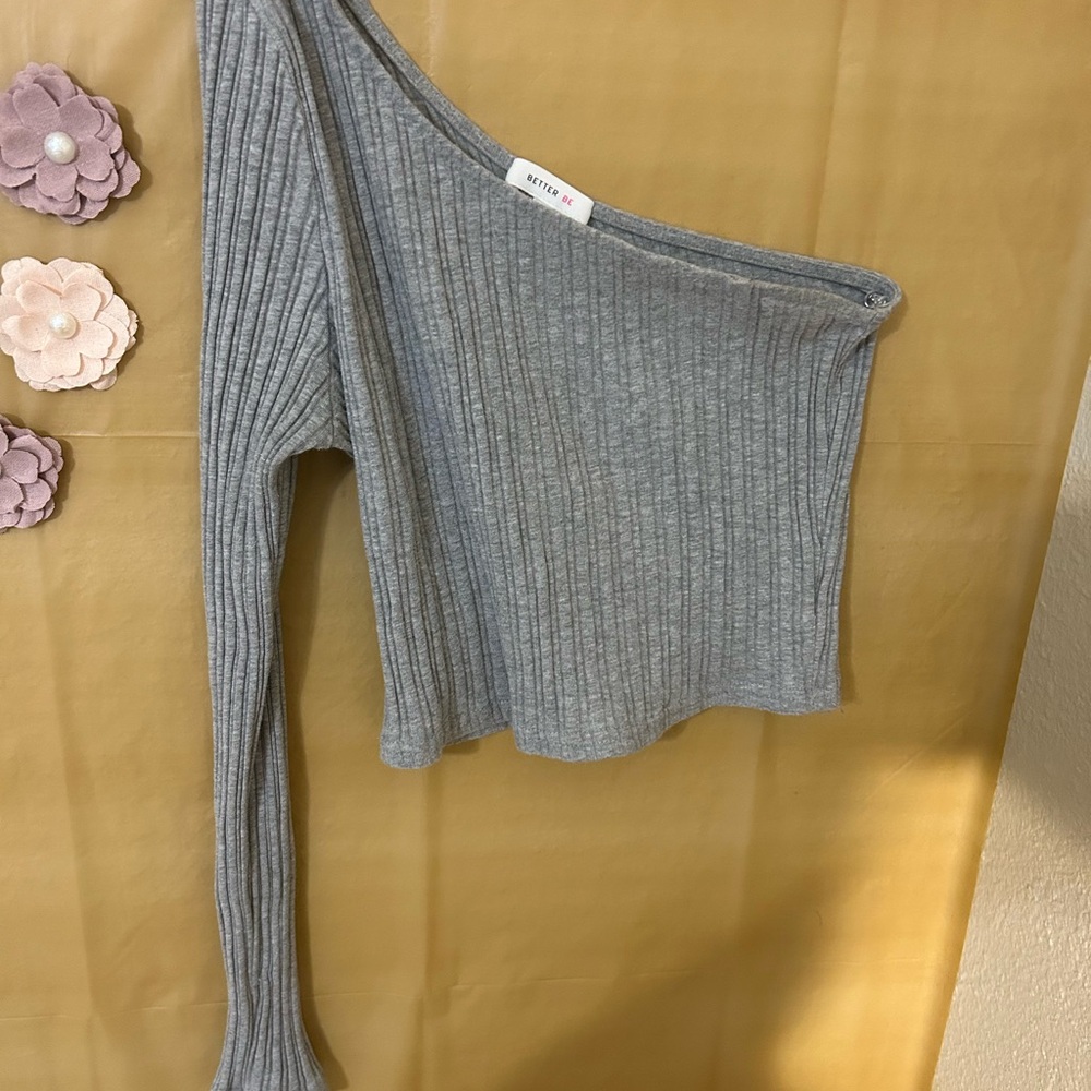 Gray Ribbed One-Shoulder Top