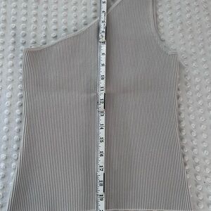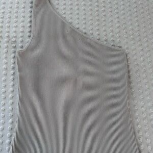 Elevate your style with this chic gray ribbed one-shoulder top. Perfect for any occasion, this top offers a modern and elegant look.