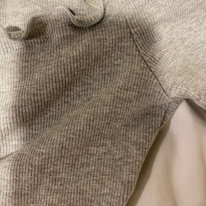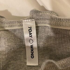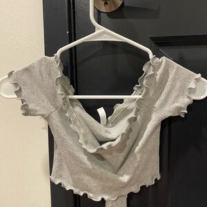 Stylish gray ribbed top with ruffle details. Perfect for casual wear.