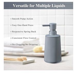 Gray Hand Soap Dispenser with No Rust Pump for Bathroom and Kitchen Countertops Refillable Striped Matte Plastic 8.5 oz