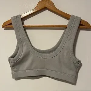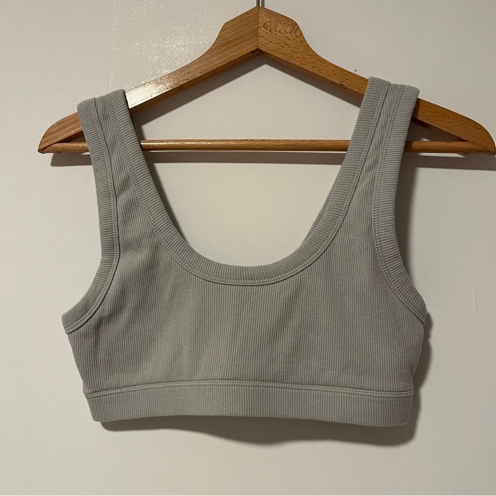 Gray ribbed sports bra or loungewear bra. Very comfortable and stylish.