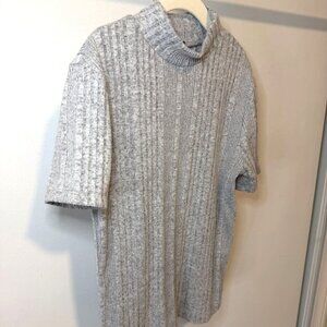 Gray Ribbed Sweater Tee Short Sleeve Mock Neck S - Y2K Style Forever 21
