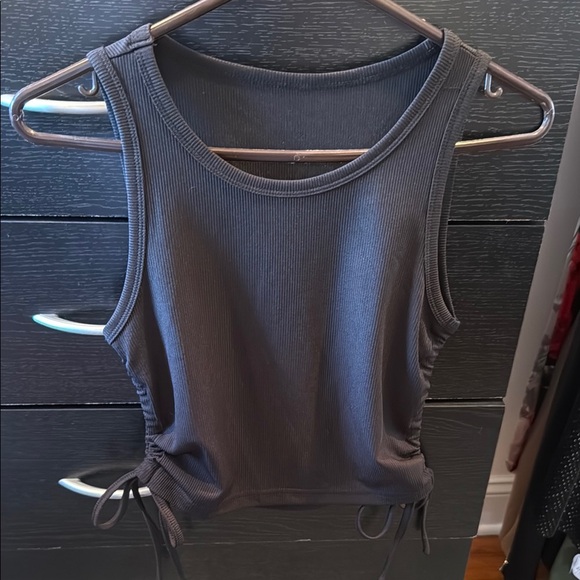 Stylish ribbed tank top. Features side ties for a custom fit. Perfect for casual wear.