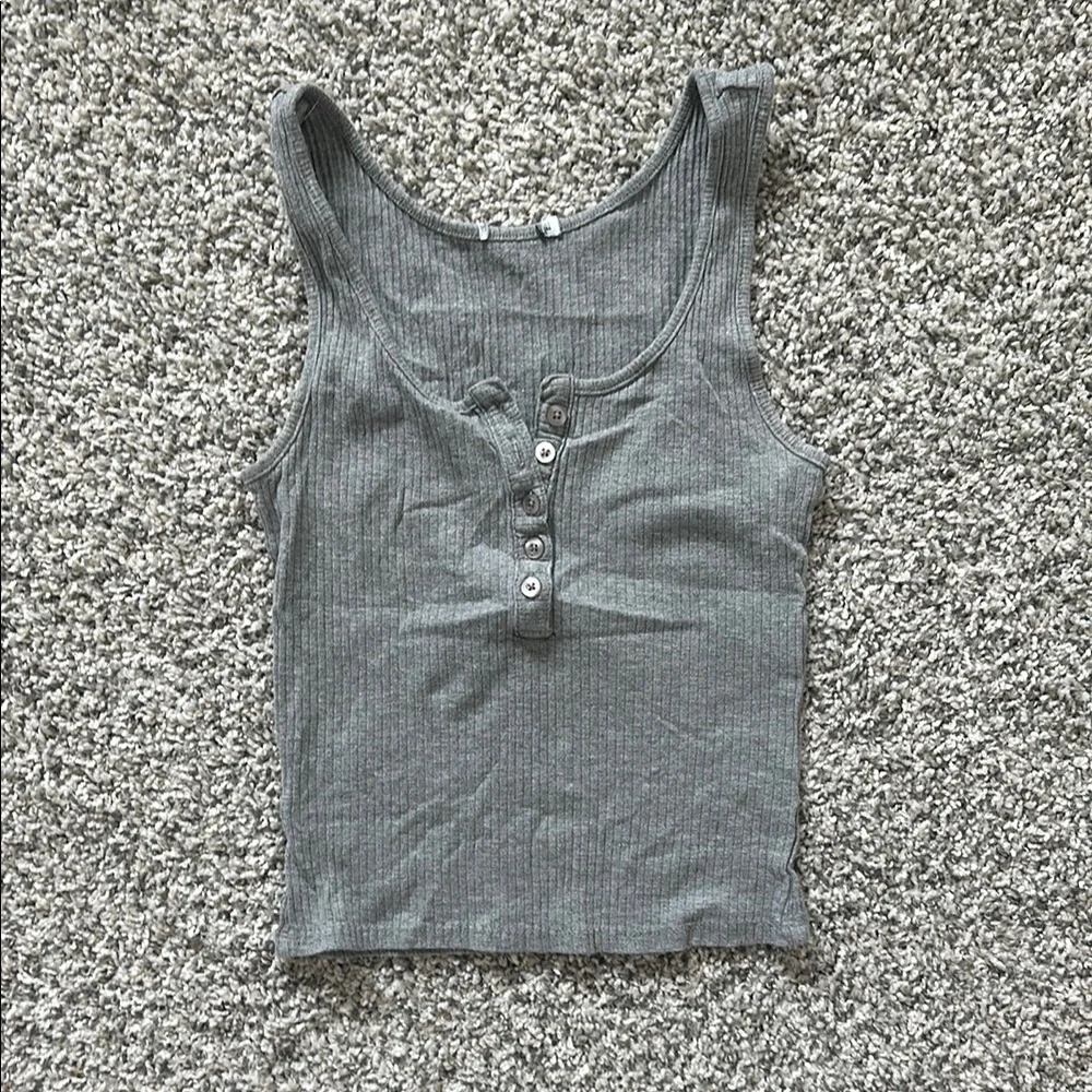 Gray Ribbed Tank Top