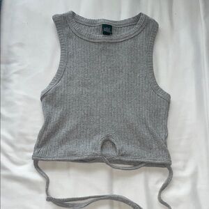 Gray ribbed tank with wrap around ties