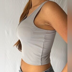 Gray Ribbed Tank Top