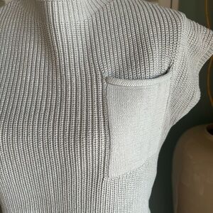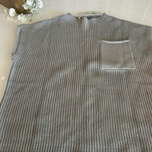Grey, ribbed pullover box shape with breast pocket Pit to pit 19.5” Length 21”