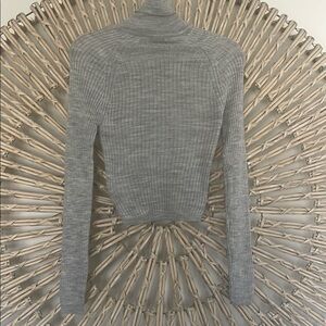 Stylish gray ribbed turtleneck sweater. Long sleeves. Perfect for layering. Extremely small. More of a size sm/xs