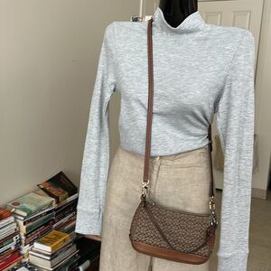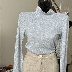 Stylish gray ribbed turtleneck sweater. Perfect for layering.