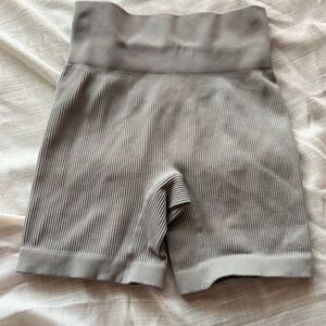 Stylish gray ribbed two-piece set. Includes a crop top and shorts. Perfect for casual wear or gym wear! Removable bra pads. I’m willing to steam products before sending them to buyer!