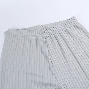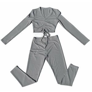 Stylish gray ribbed two-piece set. Includes a long-sleeve top and matching pants. Perfect for casual outings.