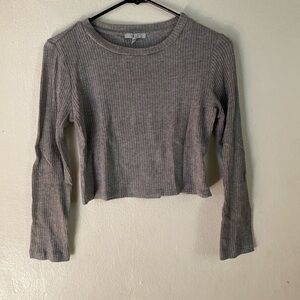 Stylish gray ribbed two-piece set. Includes long-sleeve top and matching pants.