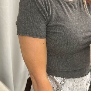 Perfect capsule piece to enhance your wardrobe - stylish gray ribbed top. Perfect for any occasion, this versatile casual piece offers comfort and style .