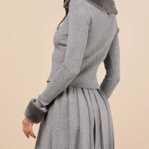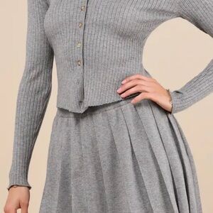 Elevate your style with this chic gray ribbed skirt. Perfect for any occasion, this skirt offers both comfort and elegance.
