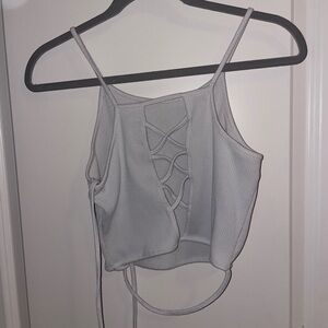 Elevate your wardrobe with this stylish gray ribbed tank top. Perfect for layering or wearing on its own, this top offers both comfort and versatility. White but with slight blueish tint consistent throughout