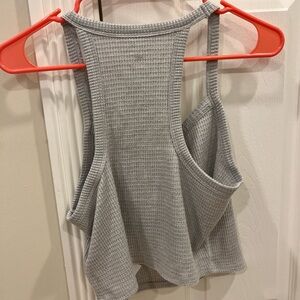 Elevate your wardrobe with this stylish gray ribbed top. Perfect for any occasion, this versatile piece offers both comfort and elegance.