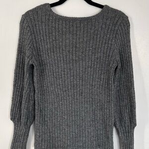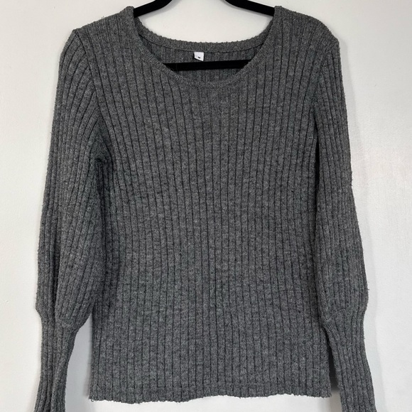 Stay cozy and stylish with this gray ribbed sweater. Perfect for any occasion.