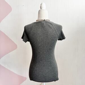 Gray Ribbed Zipper Top 2000s Y2K Grunge Indie Sleaze Retro Medium