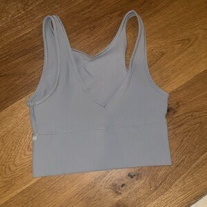 Lulu power pivot gray ribbed tank. Can be worn either way. V-neck or high neck.