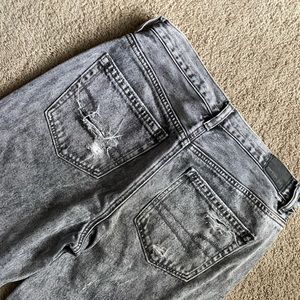 Gray/black wash destroyed denim jeans