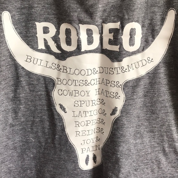 This soft gray racerback tank is perfect to wear to the summer rodeos! Lightweight, soft, comfortable and cute! It’s never been worn and is a size small!